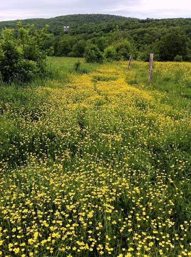 This could be the result of an unusually long cool rainy spring with no late frosts. But, I suspect it has something to do with the fact when we purchased the surrounding fields three years ago from the farmer, we asked him to stop using Round-Up. Round-Up is a systemic weed killer that is banned in many states, but not yet in New York State. Farmers tend to use it to eliminate “weeds” and yes that included wildflowers. The fields are still hayed and so there are just a few weeks to enjoy the wildflower display. The birds that nest in the long grass, Bobolinks return each year and build their nests on the ground of open meadows and there is a mad rush to raise their chicks before the farmer takes his first cut. The males are dressed in what looks like a tuxedo, but with the white shirt worn on their backs.