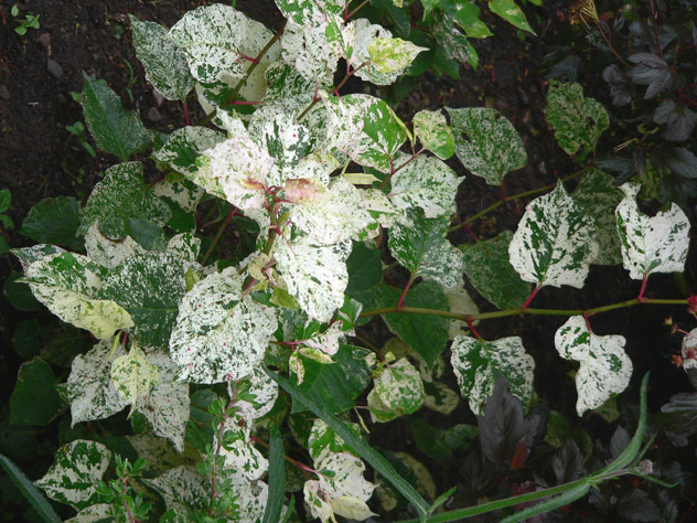 Once again I am noticing the variegated plants in the garden. Their interesting foliage pattern really adds something special to the garden. I especially appreciate the light colored leaves to liven up a dark shady area of the garden. Here are just a few examples of what I am talking about! For a more in depth discussion please read : Variegated Plants