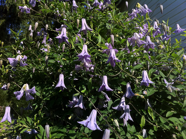 For every clematis that dies from wilt, I am replacing the larger flowering variety with a small flowering variety because they don’t seem to be victims of the disease. Also I have found I am preferring the small bell- shaped clematis to the super-size ones that demand so much attention.