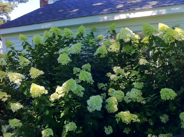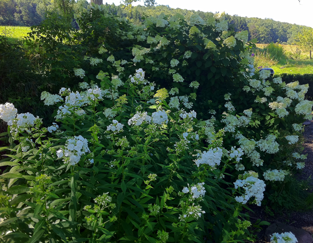 It’s mid August and two of my favorite plants are blooming at the same time. If you have an area begging for some light, you may want to plant the shrub Hydrangea Limelight and perennial Phlox David. The combination of chartreuse flowers of the Limelight and the white flowers of the phlox combines to lighten up the dullest area. David is a good variety because it is mildew resistant and produced abundant flowers late in the season. I have given over an area of my driveway repeating these two plants over a large area. It makes a great splash when most other plants are lacking luster.