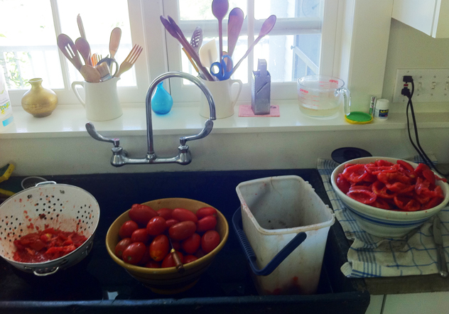 Work station: preparing tomatoes for sauce