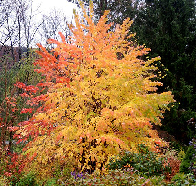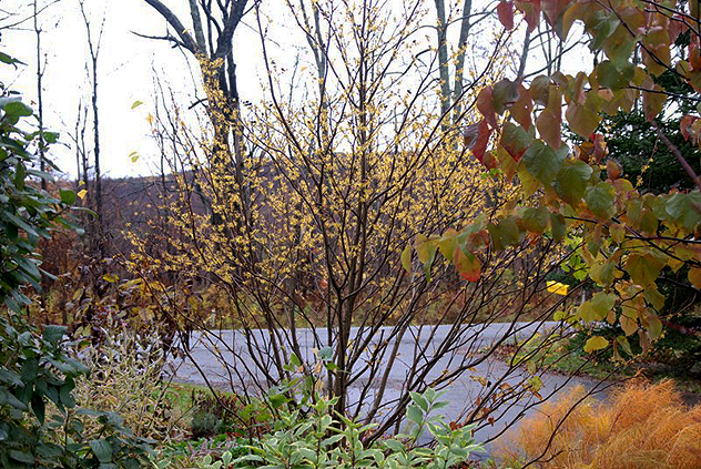 Our first snow fall is quickly melting and I have been reflecting on some of the great fall plants that add texture and color to the garden in autumn. A gardening friend sent me a few photos of her fall garden. A mass of winterberry shrubs covered in red berries gave me a pang of envy. I planted Winterberry at least 5 years ago and my shrubs hardly produce any red fruit and the few berries that do come are stripped by birds before I even have time to see them! That said, I am inspired to try again and this time I will plant this shrub in a sunnier location that has better drainage. The same friend also sent a photo of her Hamamelis Virginiana (witch hazel) which is much older specimen than the one I have. I do see a few flowers on my plant early in fall, but nothing compared to my friend’s 10 years old specimen. It gives me hope that my witch hazel will look glorious one day. In fact, I am so inspired I think I will plant another one. I planted a small Cercidiphyllum- Katsura tree, this fall and was glad to see a photo of one that is older. The texture of the yellow leaves turning a sherbet color will be a nice bonus to the garden. This tree has been on my wish list for years! Patience is not a virtue in gardening -it is a necessity.