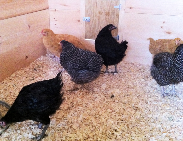 The girls arrived! 10 pullets – 6 Buff Orpingtons, 2 Plymouth Rocks and two mixed Australorps. They are still nervous to go outside after Ruby, our not so small poodle, rushed the fence and sent one of them flying onto the roof. Word got around the coop and nobody wants to venture out now. Each morning when I feed them they huddle around me brushing against my leg while I pour the feed into their tray. I like chickens and they seem to be getting to know me.