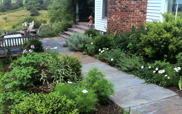 New planting border on right leading to patio