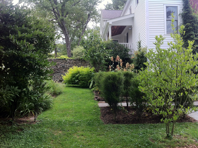 Paths help you wander, they are a gentle instruction ..come this way…look over here… A path  that winds through the landscape, causes a sense of mystery, the turns slow you down by limiting how much can be seen at once.  A straight path works best to highlight a specific focal point such as a sculpture, bench, a specimen plant or tree, or a fine distant view. An inexpensive and visually beautiful addition to a path is to lay field stones level to the ground to indicate clearly which direction your path leads. The Japanese have made it an art form on how to best lay the stones based on the natural rhythm of how we walk. A raised path of wooden treads over a marshy land can make an inaccessible area suddenly accessible. The possibilities are endless.