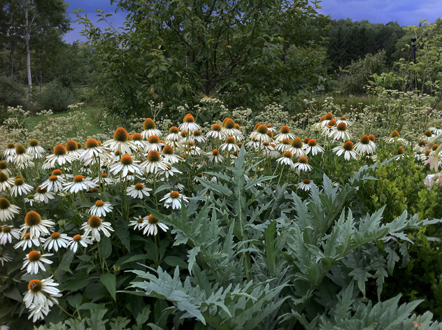 Now, in 2011, I think things have changed a bit. There are so many common plants that have been hybridized, like the purple Echinacea-coneflower that is now widely available in many white forms. The wild meadow plant Astrantia was taken out of the meadows of Europe and put into garden borders and is also widely available. When I think about my particular selection of white plants they are as common as mud!