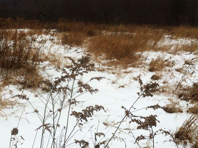 After our first decent snowfall the canvas appeared blank at first, but during a winter walk I took a few photos of the meadows that surround my house. My eye site is better at this time of year due, I believe, to the sharp contrasts outdoors. The dried meadow plants look stunning against the blanket of snow.