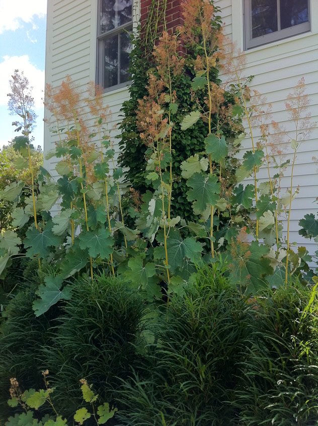 Macleaya cordata- Plume poppy incarcerated in Rhamnus Fineline hedge