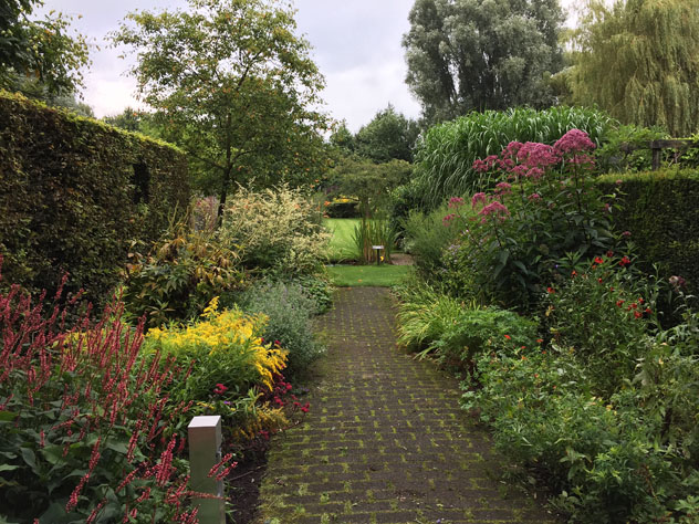 I was invited by my Dutch friend Heleen Heyning along with my friend and business partner, Jane Couch to visit Holland in late August with the plan to immerse ourselves in Dutch Gardens. At the top of our list were the gardens of one the 20th Century’s greatest landscape architects Mien Ruys. Mein Ruys died in 1999, but her gardens created over seventy years and encompassing thirty garden rooms on 6.18 acres lives on. I had seen many photos of her gardens prior to my trip, but nothing could prepare me for the magical experience of walking through the timeline of her ideas and experimentation of her innovative garden spaces on my two feet.