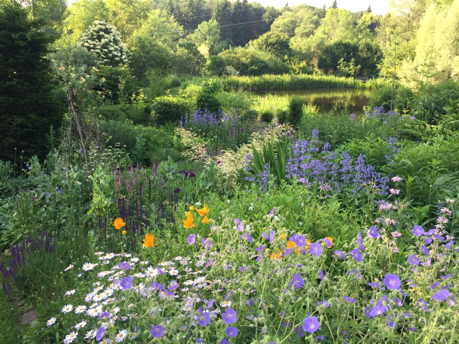 Late June, early July boarder. Mostly blue flowering perennials.